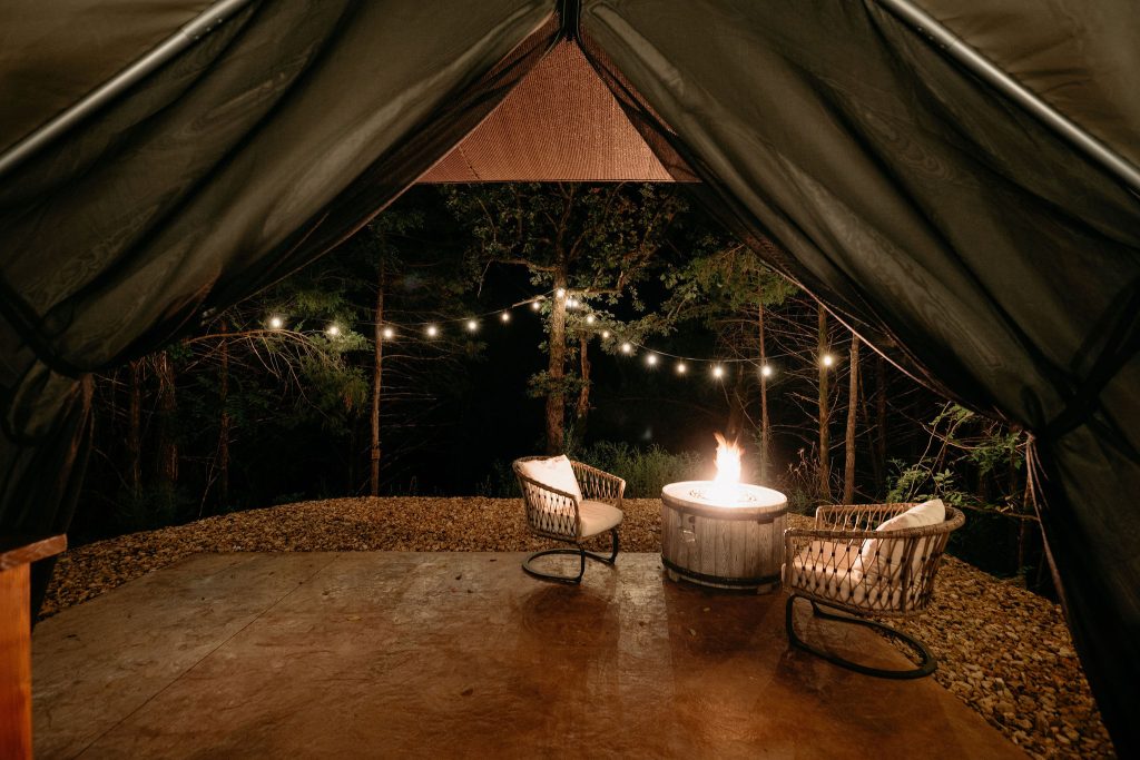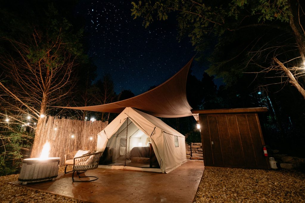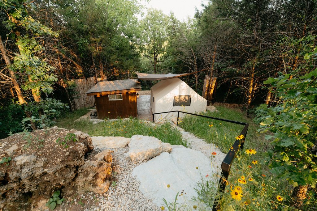 Nestled on fifty-eight acres in the heart of the Ozark Mountains, you will find this unique glamping site in Branson, MO.